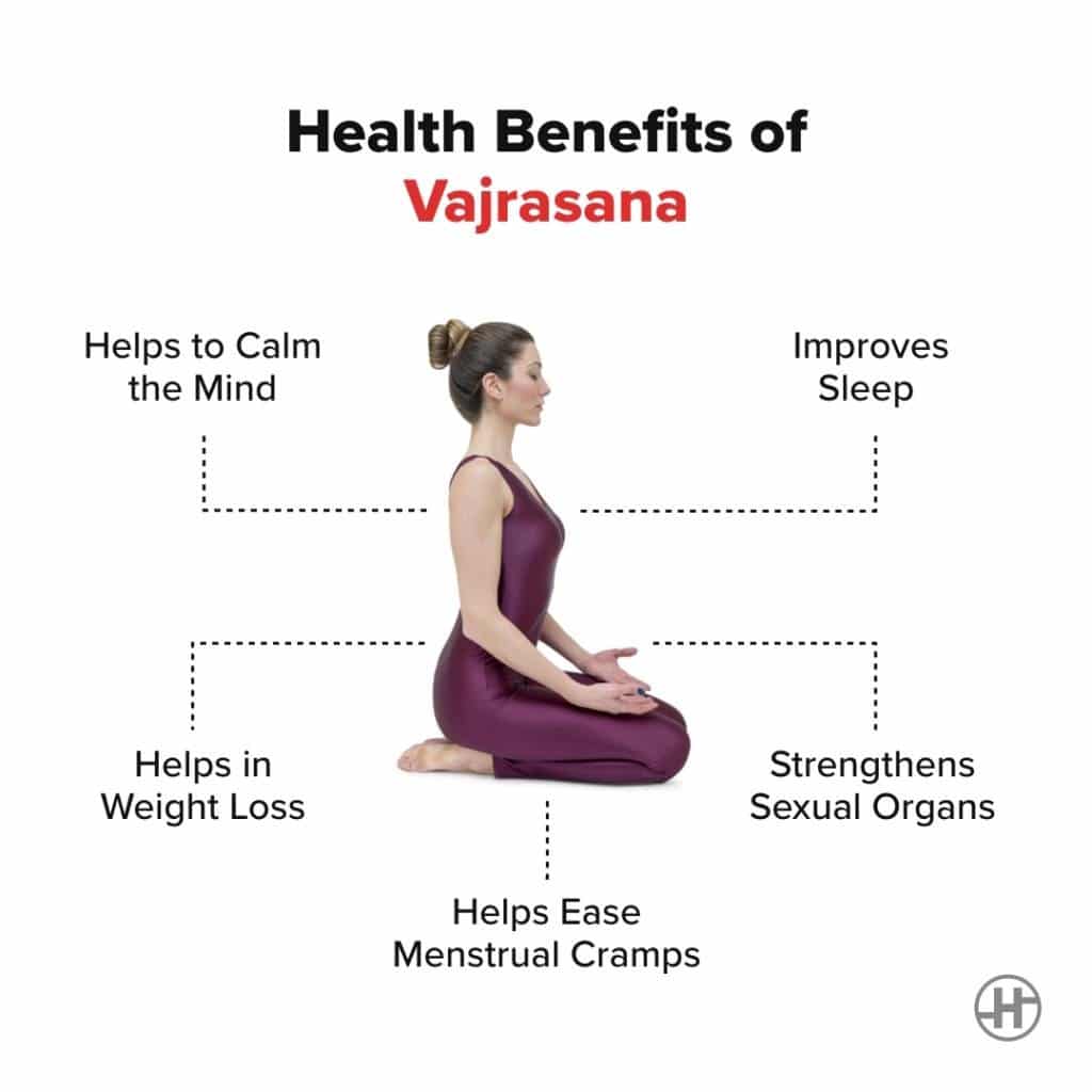 Vajrasana helps to strengthen your decrease again muscle tissues and thus gives reduction from occasional ache and discomfort.